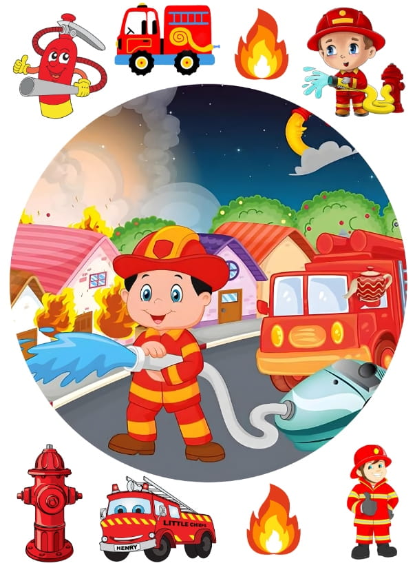Opłatek na Tort STRAŻ STRAŻAK OKRĄG POSTACIE wydruk Waflowy A4