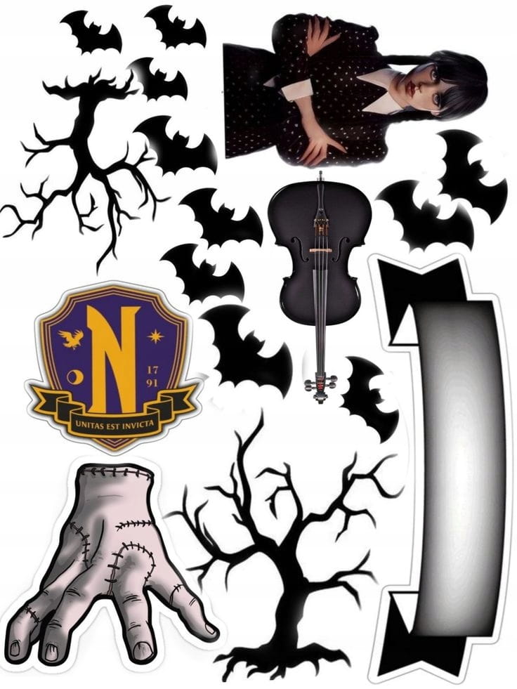 Opłatek na Tort WEDNESDAY POSTACIE + IMIĘ wydruk Cukrowy A4