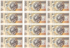 Opłatek na tort BANKNOTY ZŁOTY 200 ZŁOTYCH waflowy na Tort A4