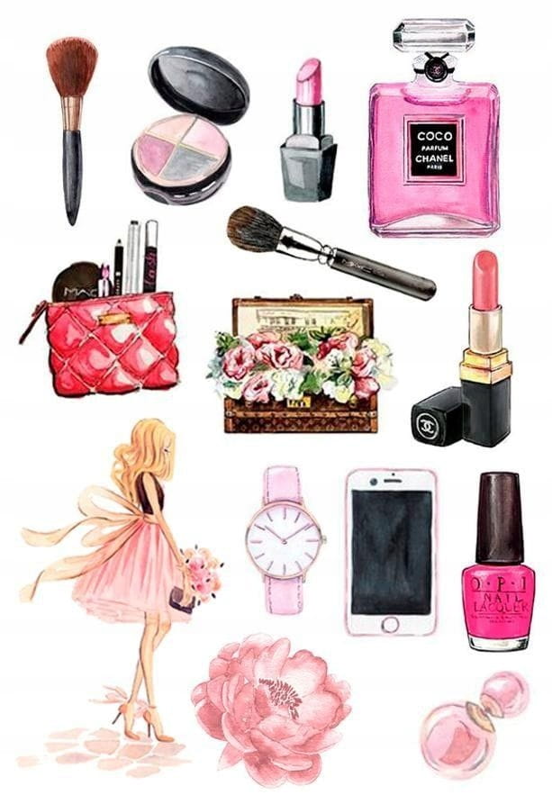 Opłatek na tort KOSMETYKI KOBIETA Dekoracja Urodzinowa Wydruk Cukrowy