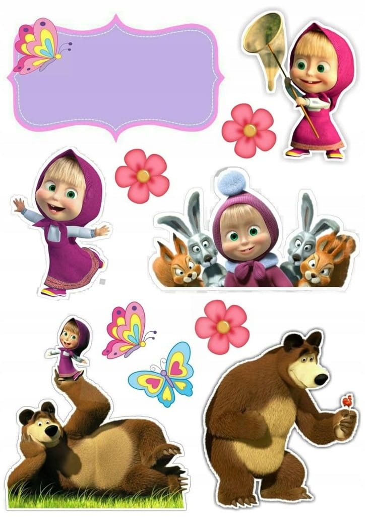 Opłatek na tort MASHA + IMIĘ Postacie Dekoracja do Tortu Wydruk Waflowy A4