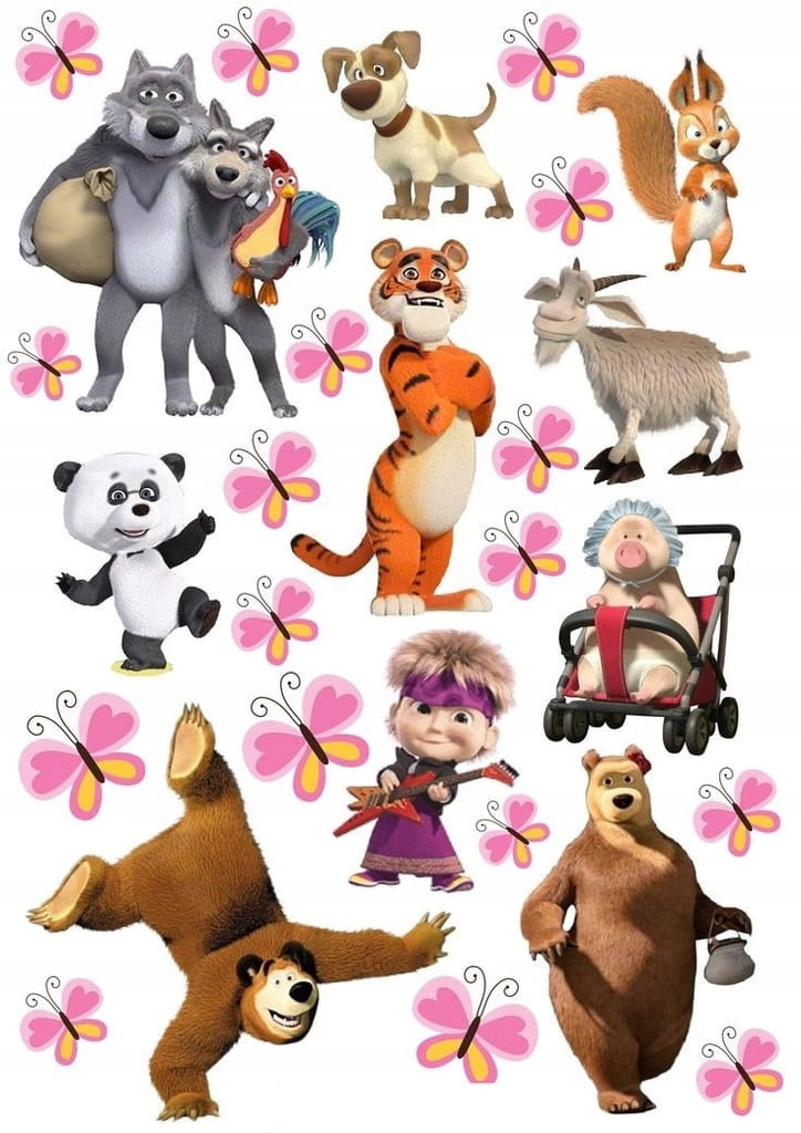 Opłatek na tort MASHA Postacie Dekoracja do Tortu Wydruk Waflowy A4