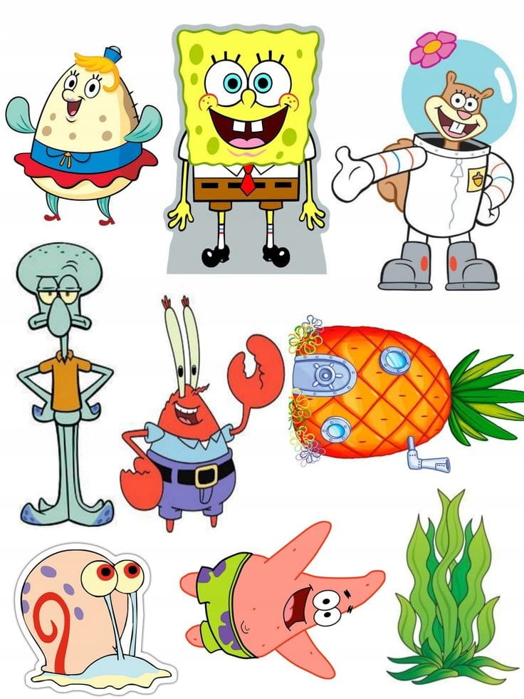 Opłatek na tort SPONGEBOB POSTACIE Dekoracja Urodzinowa Wydruk Cukrowy
