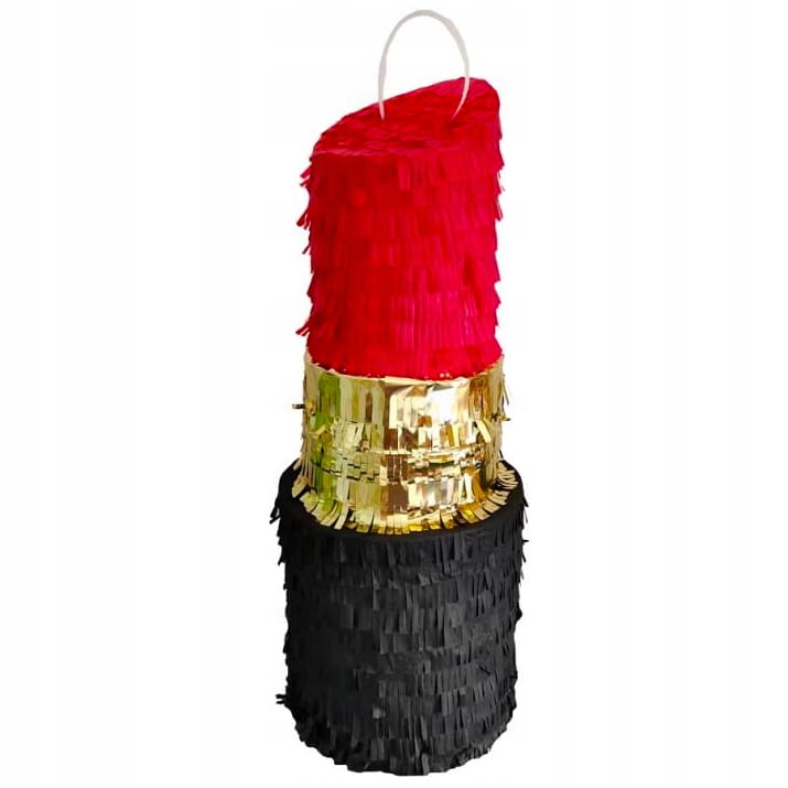 Piniata w kształcie szminki do wypełnienia upominkami, drobiazgami lub cukierkami. Posiada uchwyt do zawieszenia oraz wieczko służące do wypełnienia piniaty słodyczami.