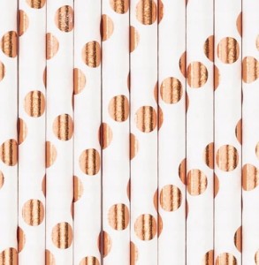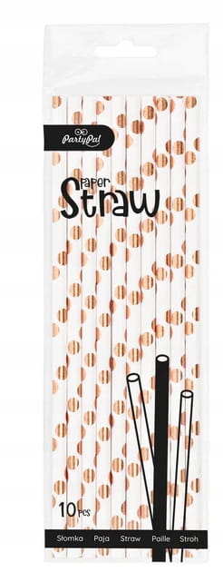 Słomki Rurki Papierowe Białe Różowo złote Kropki do Napojów Urodziny 10szt