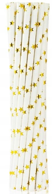Słomki Rurki Papierowe Białe w Złote Gwiazdki do Napojów Urodziny 12szt