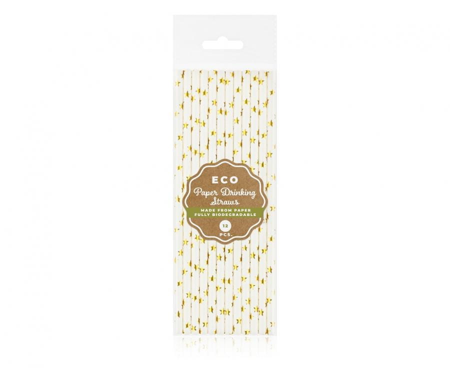 SŁOMKI PAPIEROWE BIAŁE W ZŁOTE GWIAZDKI