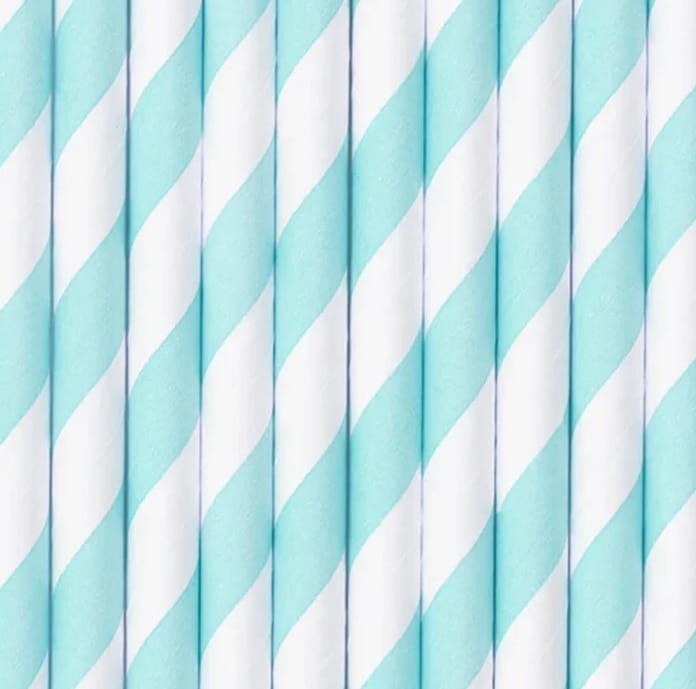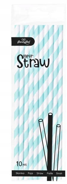 Słomki Rurki Papierowe Błękitne paski do Napojów na Urodziny 10szt
