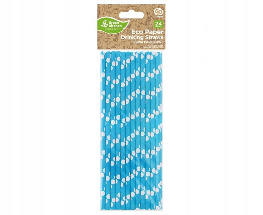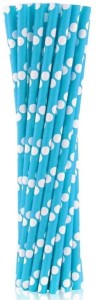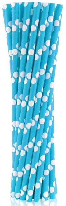 Słomki Rurki Papierowe Błękitne w białe groszki do Napojów Urodziny 24szt