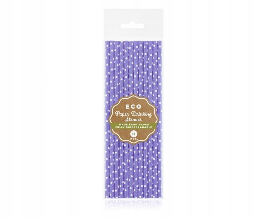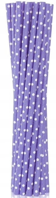 Słomki Rurki Papierowe Fioletowe w Białe Kropki do Napojów Urodziny 12szt