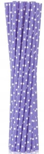 SŁOMKI PAPIEROWE FIOLETOWE W BIAŁE GROSZKI