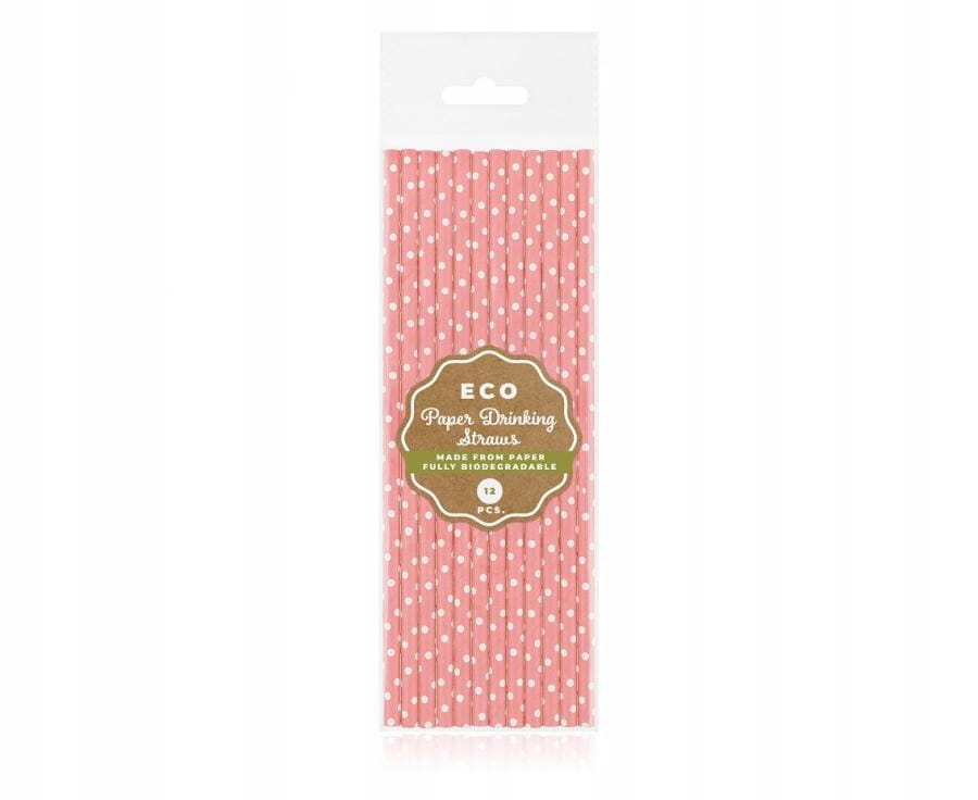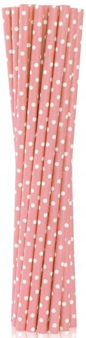 Słomki Rurki Papierowe Jasnoróżowe w Białe Kropki do Napojów Urodziny 12szt