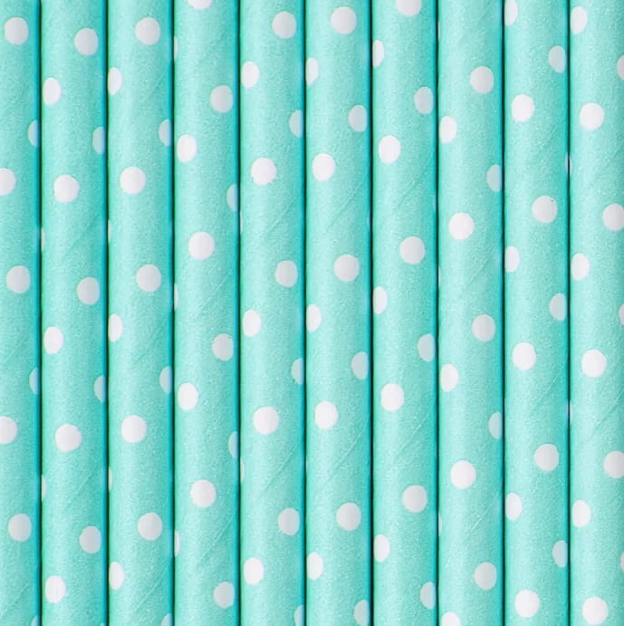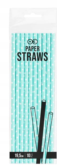 Słomki Rurki Papierowe Morskie w Białe Kropki do Napojów na Urodziny 10szt