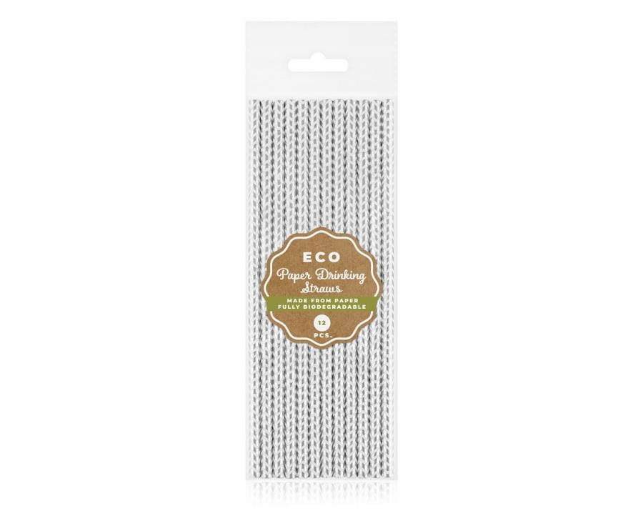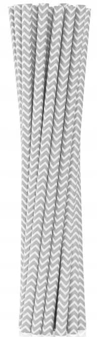 Słomki Rurki Papierowe Srebrne szlaczki do Napojów Urodziny 12szt