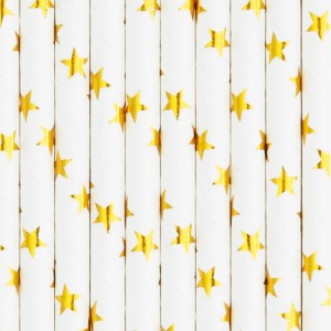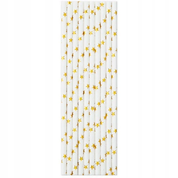 Słomki Rurki Papierowe ZŁOTE GWIAZDKI do Napojów Urodziny 10szt