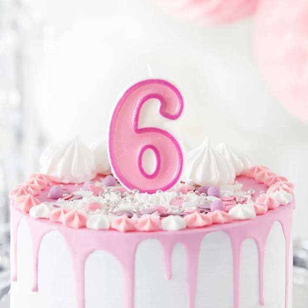Świeczka cyfra 6 Różowa