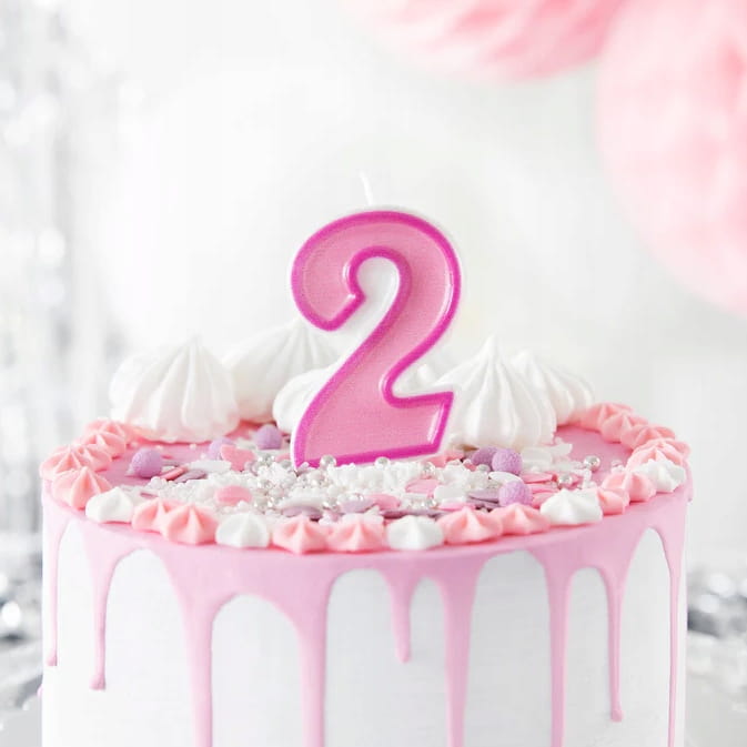 Świeczka na Tort Cyfra 2 RÓŻOWA Urodzinowa Dekoracja na TORT Urodziny
