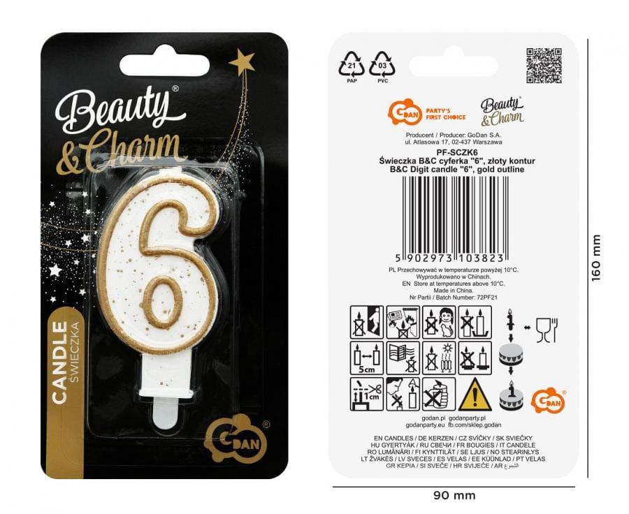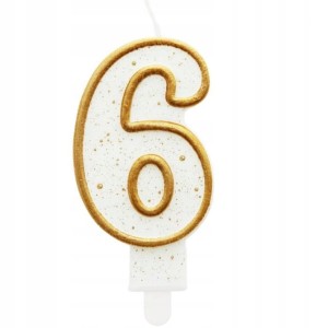Świeczka na Tort Cyfra 6 Złoty Brokat Kontur Dekoracja Do Tortu na Urodziny
