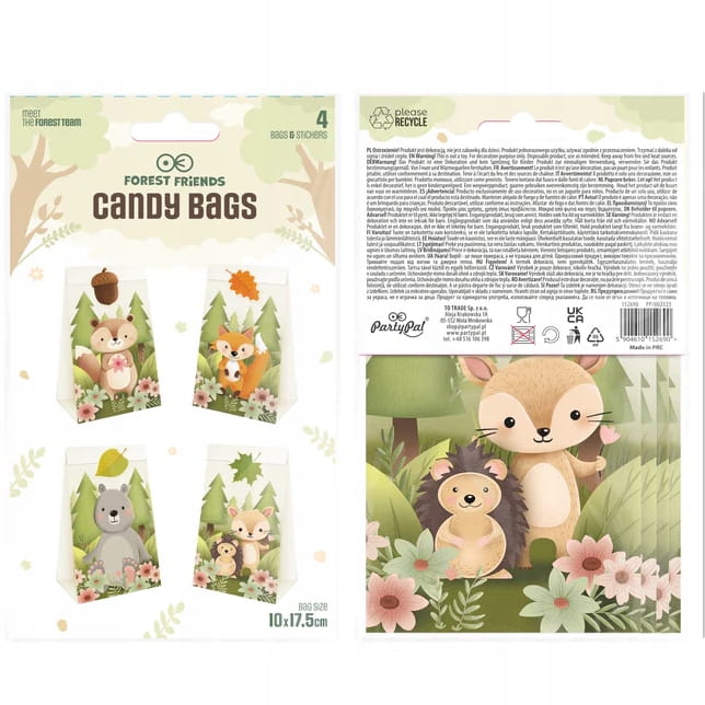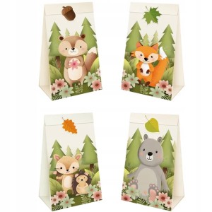 Torebki na cukierki słodycze leśne zwierzątka 4szt dla dzieci na urodziny