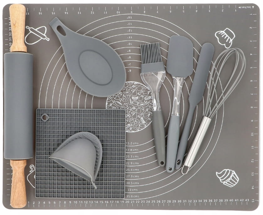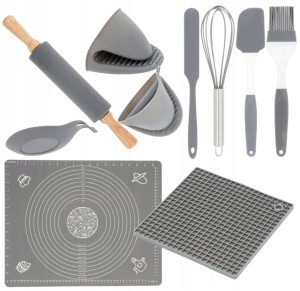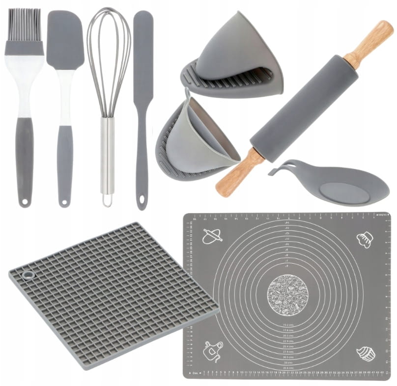 ZESTAW SILIKONOWY na Prezent Przybornik Kuchenny Stolnica Wałek Nóż 10el