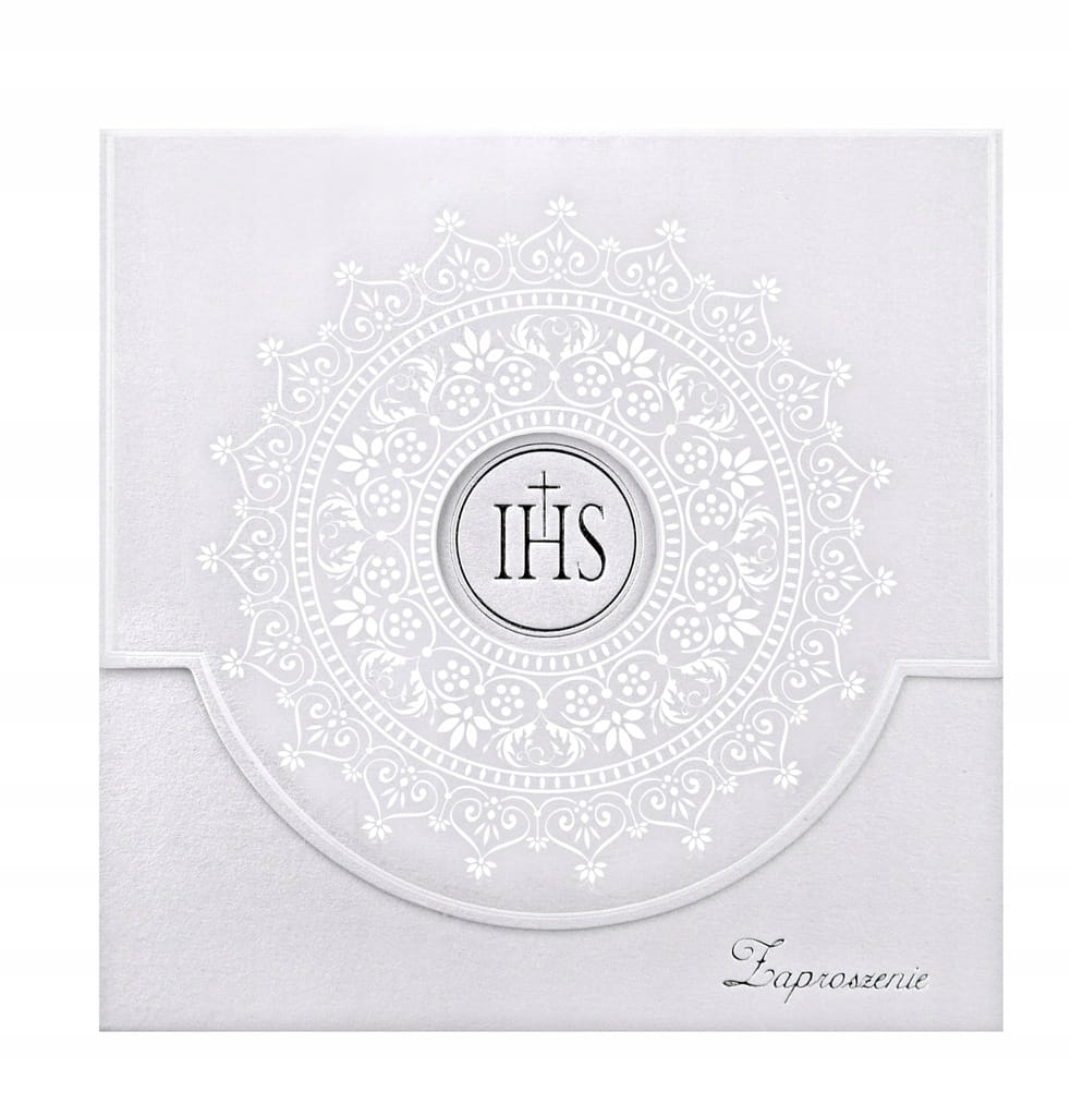 Niezwykle eleganckie zaproszenia z białym ornamentem to wspaniała opcja na komunijne zaproszenia dla dziewczynek, jak i chłopców. Dzięki ozdobnemu ornamentowi, cały zestaw wygląda bardzo wytwornie i klasycznie.