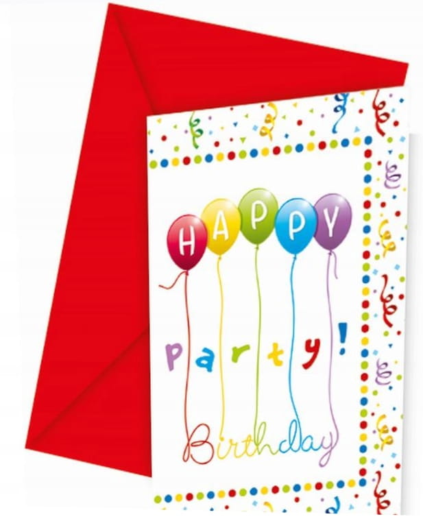 Zaproszenia na URODZINY Happy Birthday urodzinowe Kolorowe 6 szt