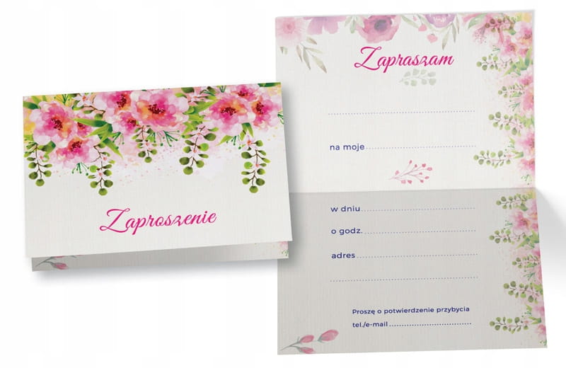 Zaproszenia na URODZINY IMIENINY Kwiaty Uniwersalne 5szt + Koperty