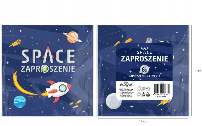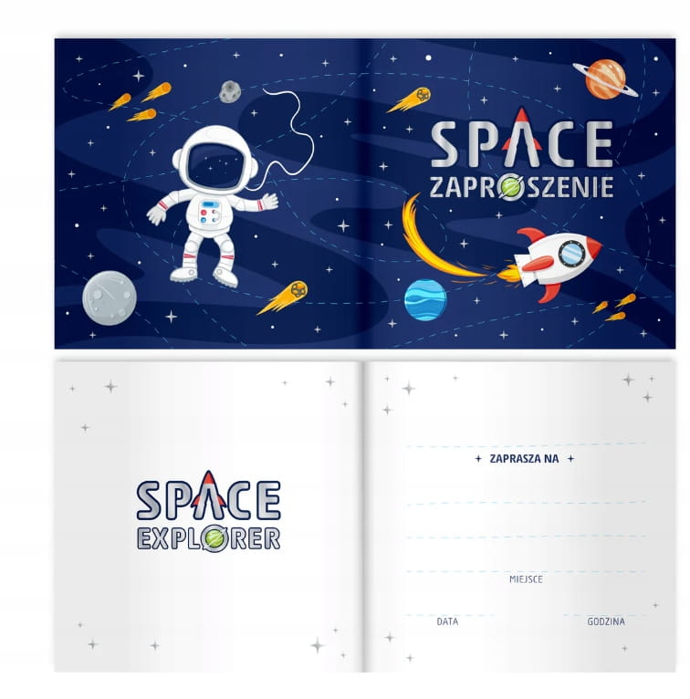 Zaproszenia na URODZINY Kosmos Rakieta 6szt