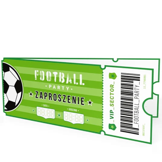 Zaproszenie na imprezę w kszt.ałcie biletu na mecz piłki nożnej. Wspaniały pomysł na Football Party.