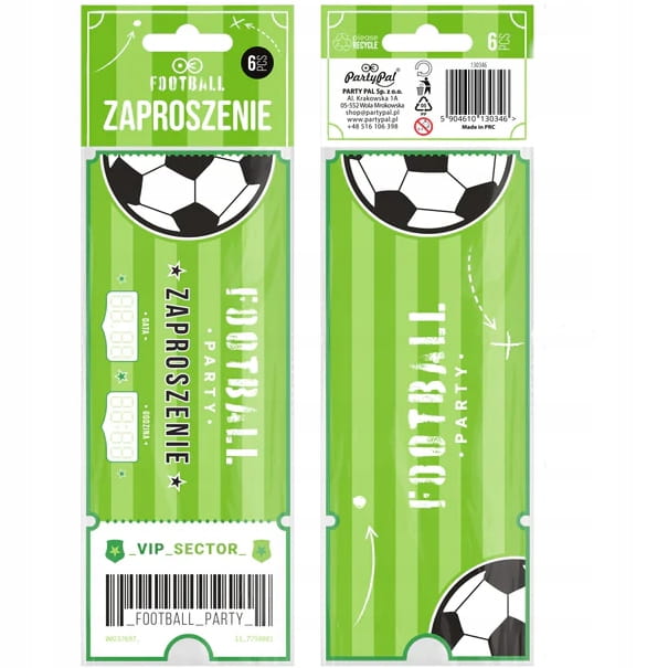Zaproszenia na URODZINY dla Chłopca Piłka Nożna Piłkarz Zielone 6szt