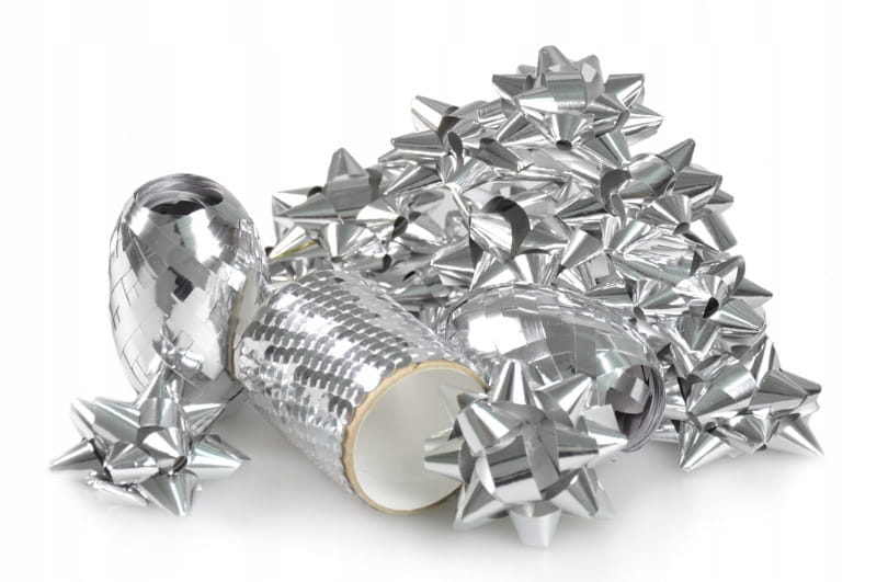Zestaw SREBRNYCH Wstążek do Pakowania Prezentów KOKARDKI WSTĄŻKI